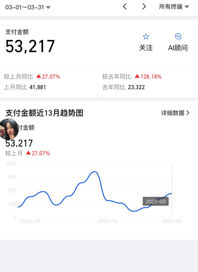 2016级电子商务专业毕业生曹一佳本人的淘宝店铺销售业绩