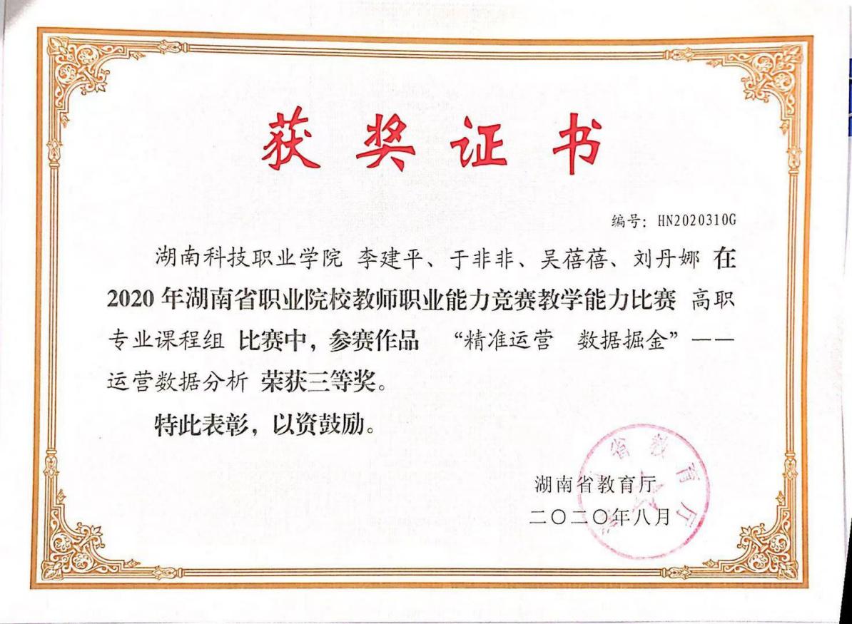 2021年湖南省职业院校教师职业能力竞赛教学能力比赛三等奖证书
