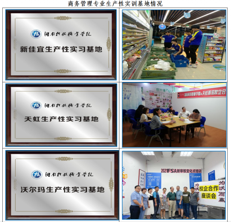 商务管理专业与企业共建多个产教融合基地,专业拥有商务直播实务实训室、商务数据分析实训室、网络策划推广实训室、双11综合实训室等十多间,专业旨在适应数字化时代的商务发展需求同时培养学生在商务环境中的实际操作能力、创新思维和战略规划能力。专业与湖南省会展集团、湖南茶悦文化产业发展集团、沃尔玛长沙分公司、天虹股份、新佳宜等企业共建产教融合实训基地。