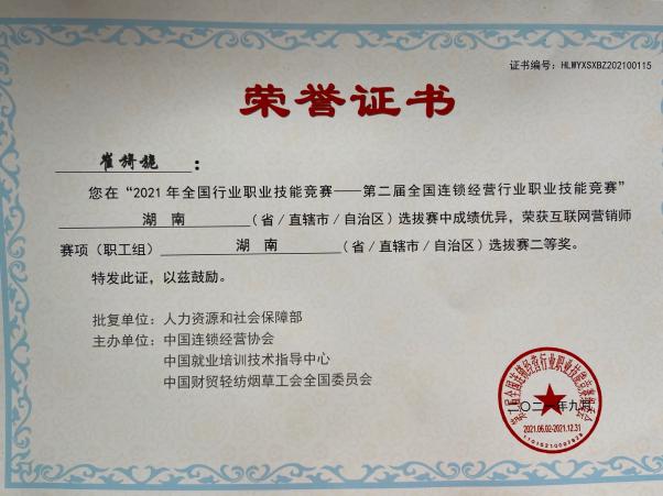 本专业的育人成果体现在多个方面,包括人才培养质量的提升、课程体系的优化、师资队伍的建设以及校企合作的成果等。本专业教师和学生获得教育行政部门举办的省级职业技能竞赛一等奖1项、三等奖5项,本专业教师指导学生参加湖南黄炎培职业教育奖创业规划大赛一等奖1项。2021年本专业教师获得全国行业职业技能竞赛第二届全国连锁行业职业技能竞赛-互联网营销师赛项(职工组)湖南省二等奖。2022年本专业教师以第二主持人完成了湖南省体育科学学会的厅级课题《基于立德树人的校园体育文化建设与大学精神传承“四位一体”模式研究》;2023年本专业教师主持了厅级课题,湖南省体育局课题《区域经济一体化背景下长株潭地区体育产业协同发展研究》。
