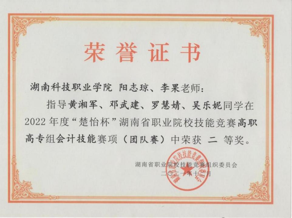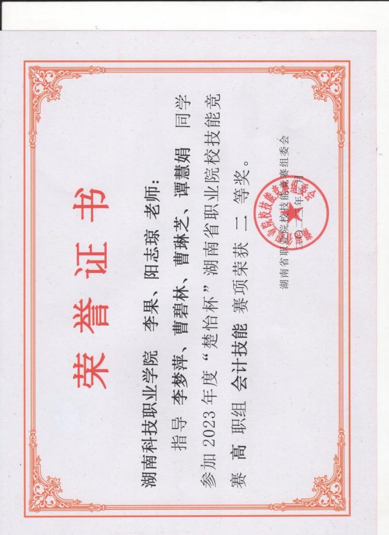 本专业的育人成果体现在多个方面,包括人才培养质量的提升、课程体系的优化、师资队伍的建设以及校企合作的成果等。2023年《会计信息系统应用》课程完成认定省级精品在线开放课程,《管理会计实务》《财务大数据分析》《会计基础》《大数据技术在财务中的应用》等4门课程立项校级精品在线开放课程。教师和学生获得教育行政部门举行的湖南省教师职业能力大赛一等奖1项、三等奖3项;学生参加湖南省创新创业大赛,获得三等奖1项;学生参加职业院校技能竞赛,省级职业技能竞赛一等奖1项,二等奖4项、三等奖9项。