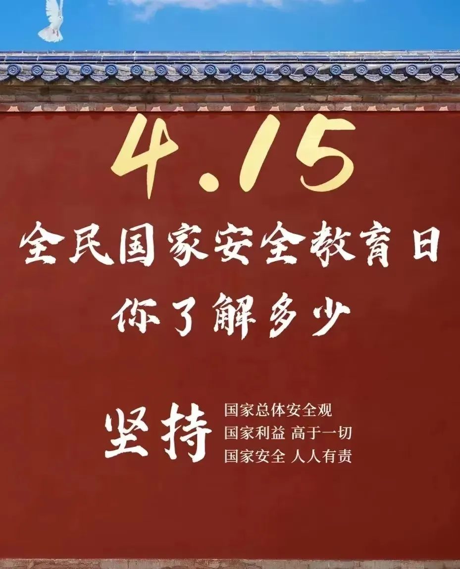 国家安全教育日,即全民国家安全教育日,时间在每年的4月15日,由 2015 年第十二届全国人人民代表大会常务委员会第十五次会议通过的《中华人民共和国国家安全法》规定设立。同时,它具有贯彻总体国家安全观,增强全民国家安全意识和素养,夯实以新安全格局保障新发展格局的社会基础的作用。