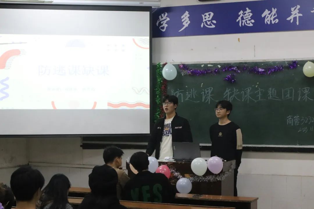 为提高商学院学生的学习积极性和主动性,强化学习氛围,保障教学质量,培养良好的学习习惯,让学生树立正确的学习态度,进一步提高广大学生的综合素质。由商学院团总支学生会主办,商学院团总支学生会助学部承办的“防止逃课、缺课”主题教育活动,于2023年11月8日19:00在商学院各教室开展。