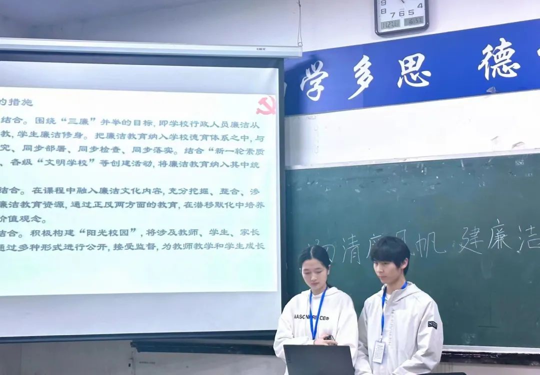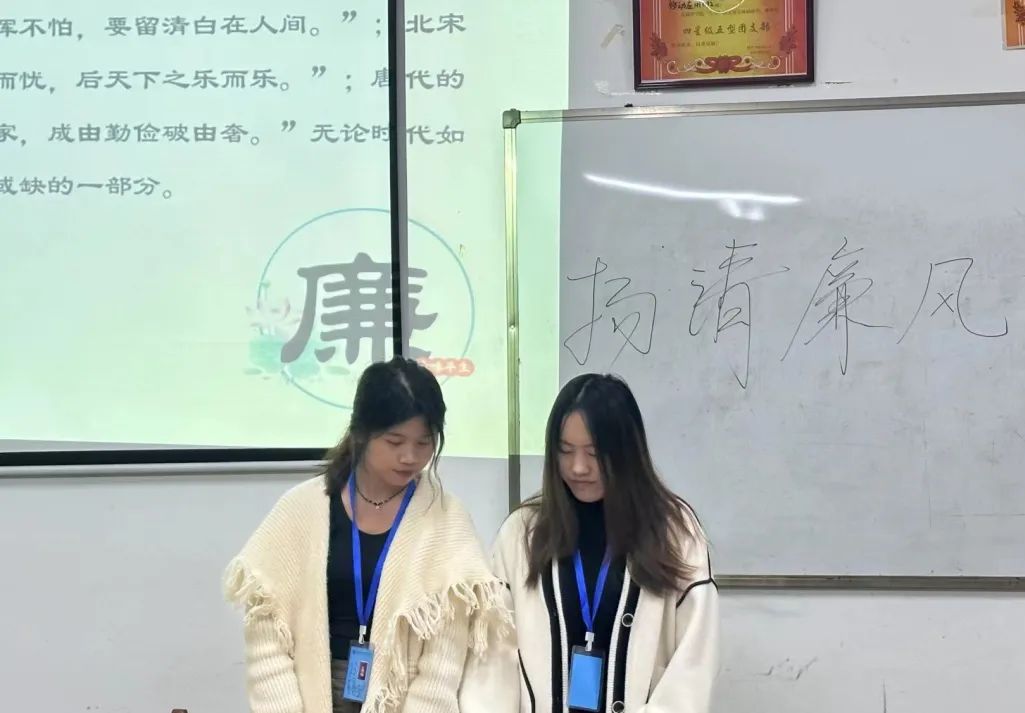 为了提倡我院学子扬清廉之帆,展鸿鹄之志,倡诚信之守,舞和谐之风,由商学院团总支学生会主办,商学院团总支学生会权益部承办的“扬清廉风帆,建廉洁校园”主题宣讲活动,于2023年11月27日19:00在各班教室开展。