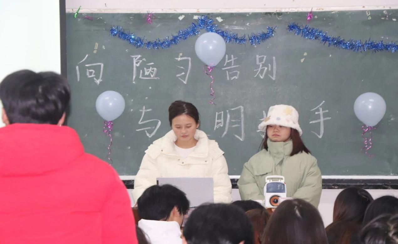 为了让同学们意识到文明礼仪的重要性,进一步营造积极向上的校园氛围,培养同学们良好的行为习惯,由商学院团总支学生会主办,商学院团总支学生会学生公寓服务部承办的“向陋习告别,与文明握手”主题团课,于2023年12月18日19:00在商学院各班教室开展。
