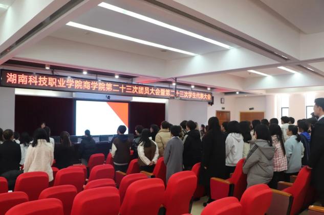 2024年1月15日,我院在天心区南院多功能报告厅召开学院第二十三次团员大会暨第二十三次学生代表大会。学院院长许文全、党总支书记李洁妮、学校团委副书记王诗涵、学院党总支副书记冯志强、副院长黄萍、教务办主任张婷、全体辅导员老师、学院第二十二届学生会主席团成员及学生代表共130余人参加大会。