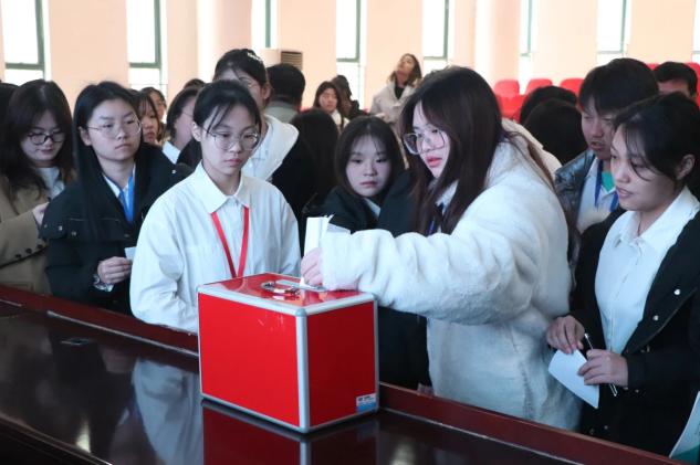 经总监票人肖玉珍、总计票人欧烂现场统计。最终杨显庭,许琳钰,汪煦,李偲懿,肖飞杨当选商学院第二十三届学生会主席团成员。