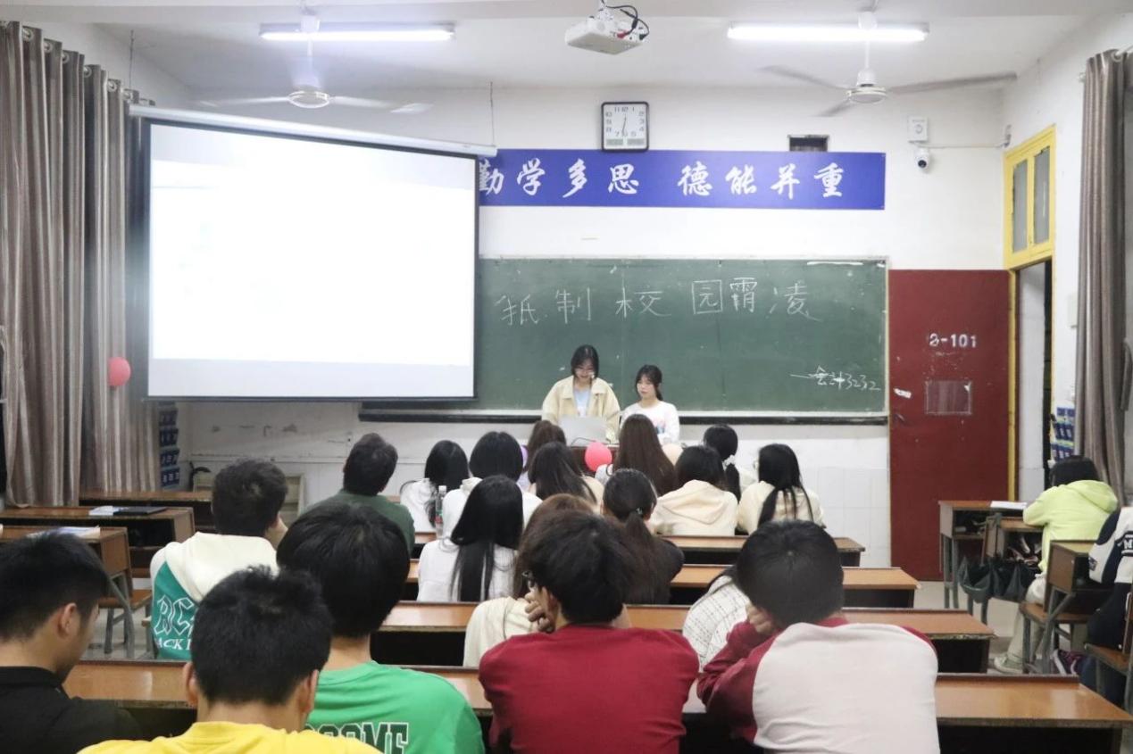为了全面提升学生对霸凌行为的认识,增强防范霸凌的自我保护意识,进而构建和谐的校园环境,确保学生的身心健康,由校团委主办、商学院团总支学生会学创部承办的“拒绝霸凌 与善同行”团课活动,于2024年4月2号19:00在商学院各班教室开展。