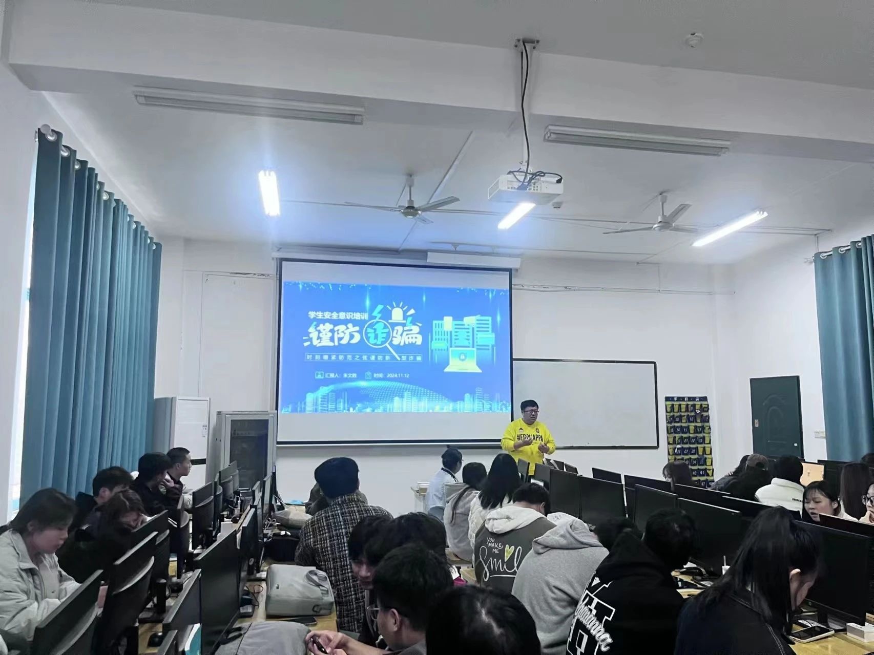 各班辅导员积极响应学院号召,于2024年11月22日至29日期间在各班召开了校园安全主题班会。班会形式多样,内容丰富,涵盖消防安全、网络安全、人身安全等多个方面。通过案例分析、视频展示、互动讨论等环节,同学们深刻认识到安全事故的危害,学习到实用的安全知识和应急处理技能,进一步提升了自我保护意识。
