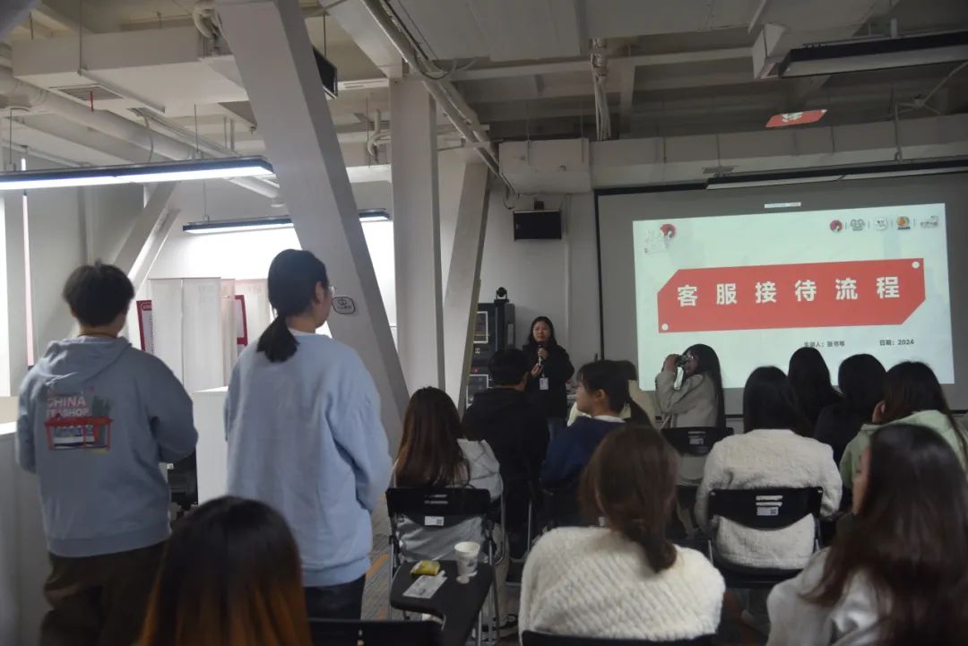 紧接着,客服环节的讲解让同学们对品牌与消费者之间的沟通桥梁有了清晰的认识。茶颜悦色强调了卓越客服服务的重要性,其客服团队不仅具备专业的产品知识,更以热情、耐心和高效的服务态度著称。工作人员详细介绍了客服工作流程,包括如何快速响应客户咨询、妥善处理投诉与售后问题,以及如何通过有效的沟通技巧提升客户满意度与忠诚度。特别提及了“班牛”这一客服管理工具在工单处理、数据统计与团队协作方面发挥的强大作用,它大大提升了客服工作的效率与精准度,为茶颜悦色的电商服务质量保驾护航。