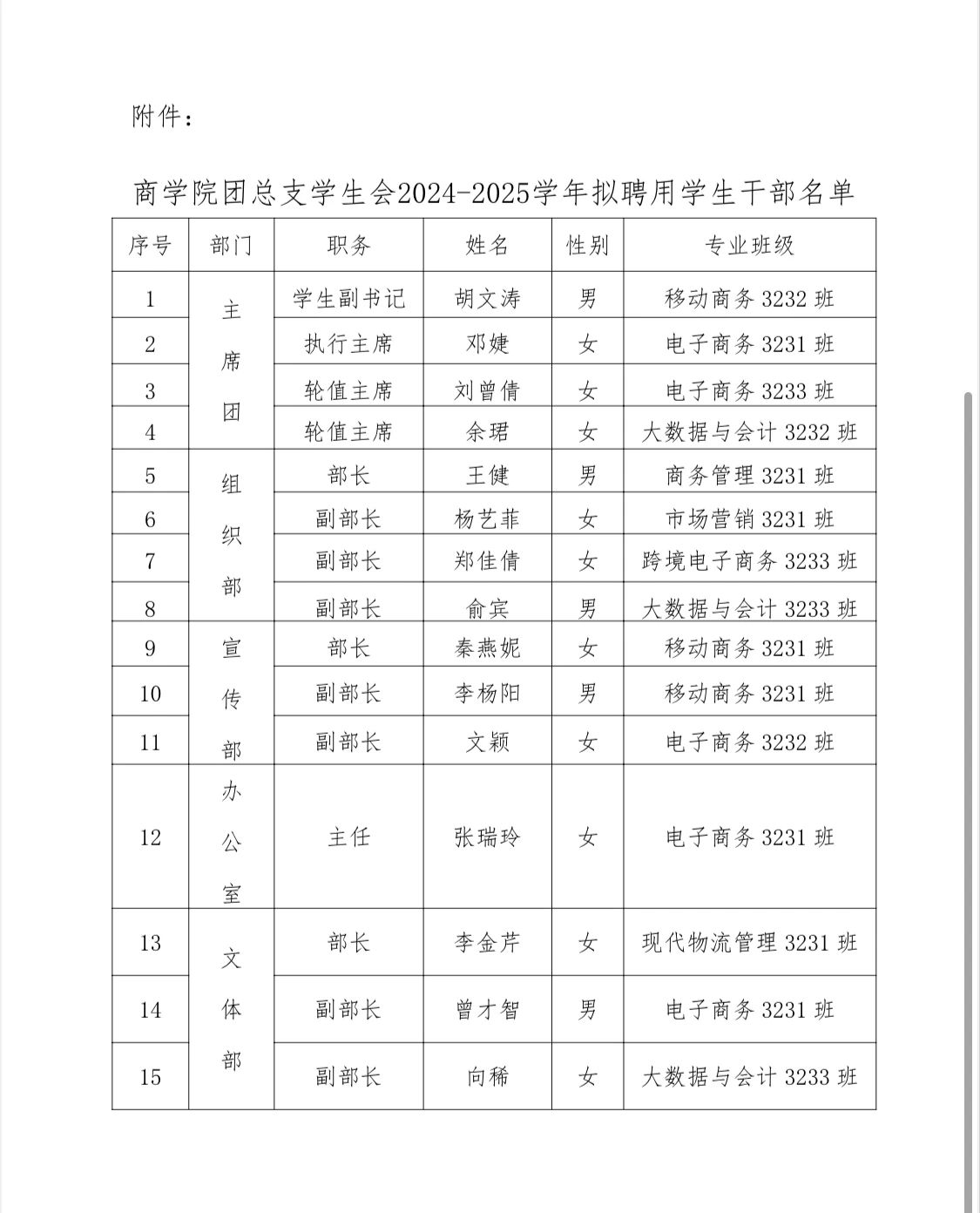 关于公布商学院团总支学生会2024-2025学年拟聘用学生干部名单的通知