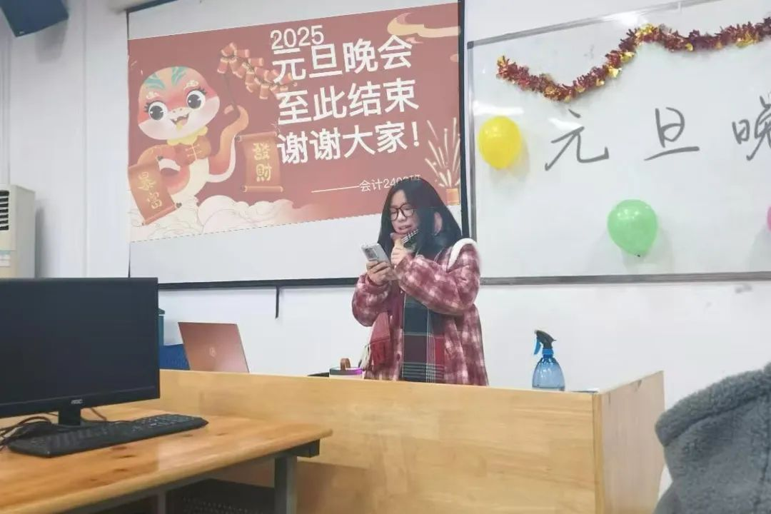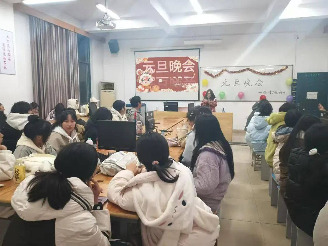 新春的脚步渐近,喜庆的气息在空气中弥漫。会计2403班和2404班的教室里张灯结彩,一片欢腾,“庆元旦,迎新年” 班级联欢活12月15日晚盛大开启。欢声笑语交织在一起,同学们齐聚于此,心怀着对蛇年的美好憧憬与祝福,共同开启这场充满欢乐与温馨的新春联欢,热切地期盼着新春佳节的正式到来,准备在这浓浓的节日氛围中迎接2025年。