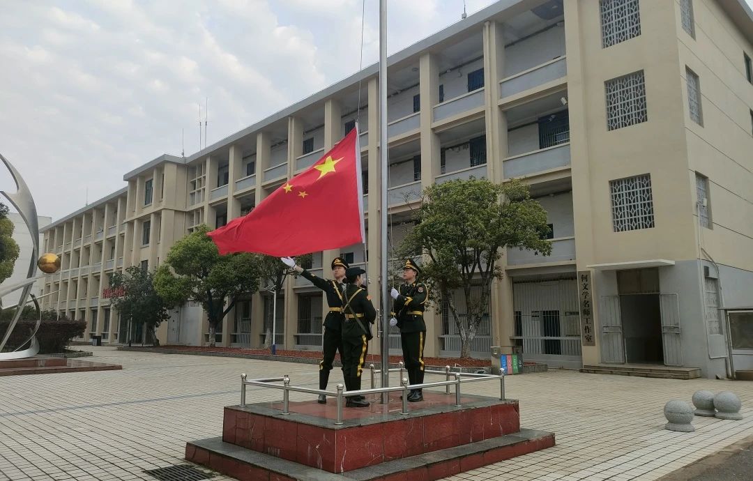 伴随着雄壮的国歌声,五星红旗冉冉升起,全体师生肃立注目,心中激荡着对祖国的无限热爱与崇高的使命感。