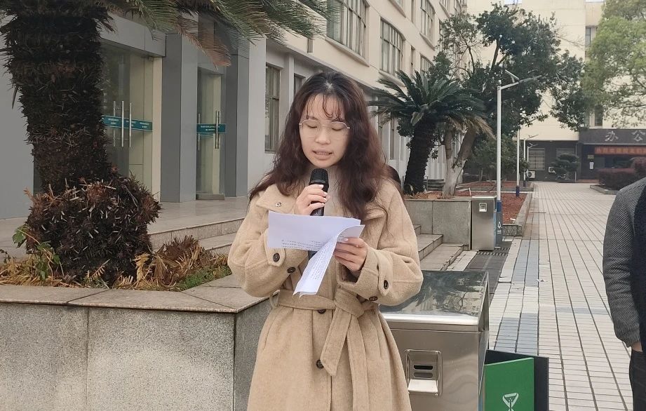 学生代表邓婕以“青春之志诠释奋斗者与时间的对话”为主题进行发言。她回溯张衡制仪、王阳明格物之典,立足当代青年科研攻关、文物修复等实践,指出时间因奋斗而闪耀不同形态。她提及之江实验室团队、“中国天眼”工程师、故宫90后修复师们将理想熔铸于时代脉搏,以创新赓续文明薪火。她号召青年以社会主义核心价值观为指引,在平凡岁月中淬炼真金,既做追梦人,更当“炼金者”,让个人成长与国家发展同频共振,书写新时代的青春答卷。