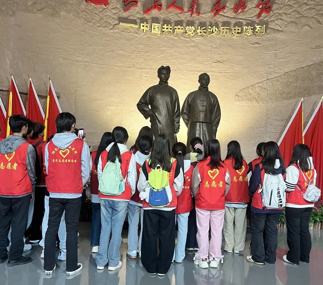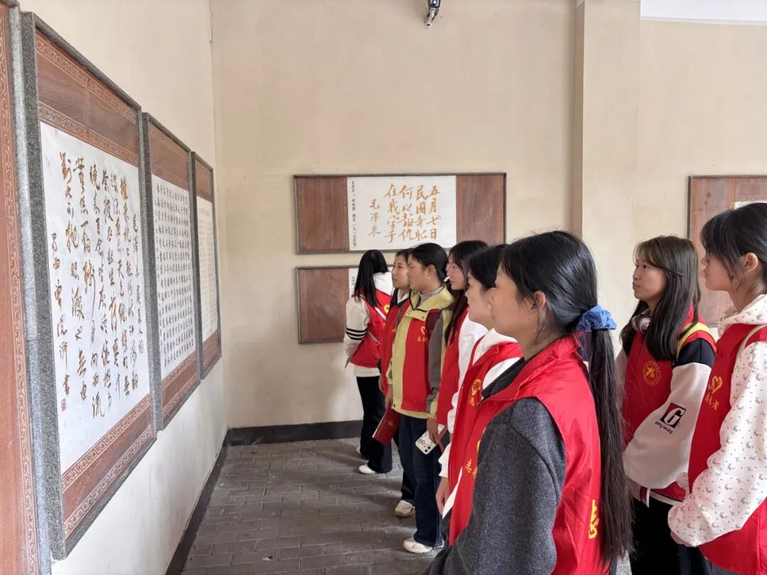 在毛泽东诗词对联书法艺术碑廊,大家驻足欣赏,从“独立寒秋,湘江北去”的豪情到“红军不怕远征难”的坚毅,深刻感受伟人的家国情怀与革命精神。随后,同学们瞻仰了毛泽东塑像,参观了中共湘区委员会旧址暨毛泽东杨开慧故居,感悟革命先辈的奋斗历程。