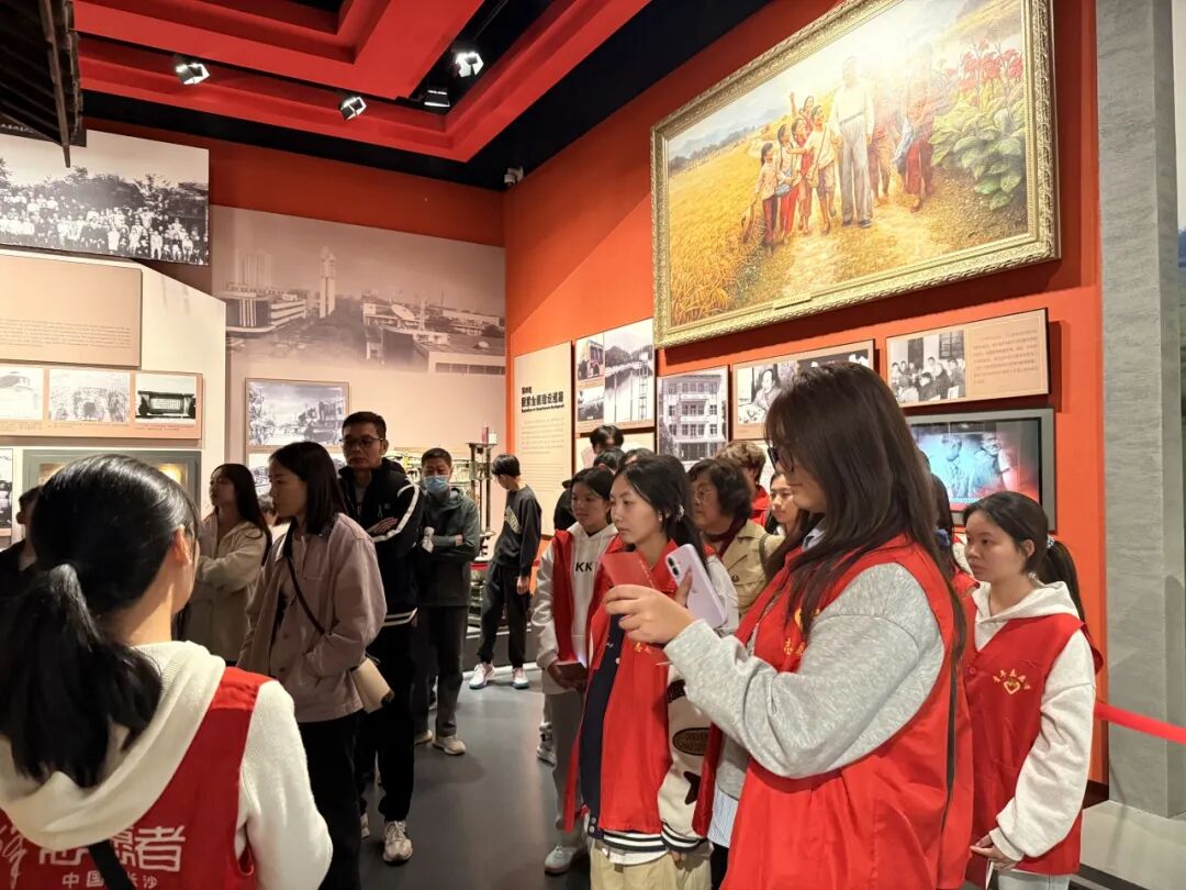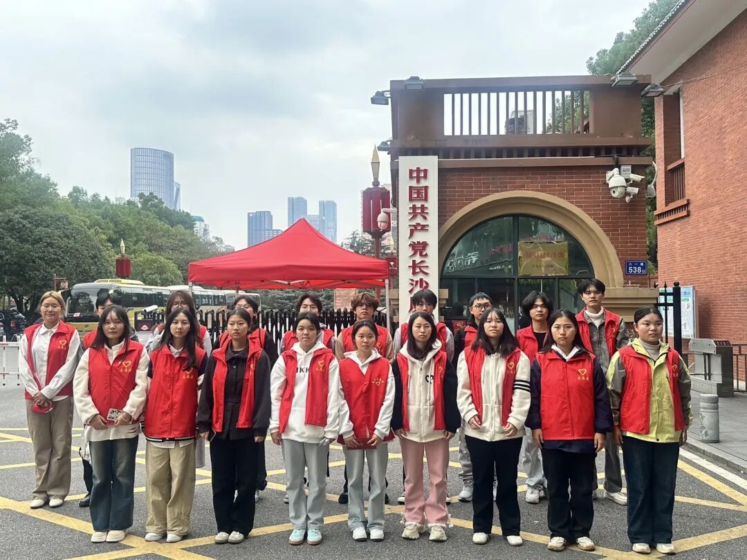 活动伊始,团总支书记龚何雪琪作动员讲话,鼓励全体团员筑牢信仰根基,贡献青春力量。辅导员王长江老师强调了安全注意事项并部署活动安排。随后,同学们身着“红马甲”志愿服,高举团旗,前往长沙党史馆参观学习。