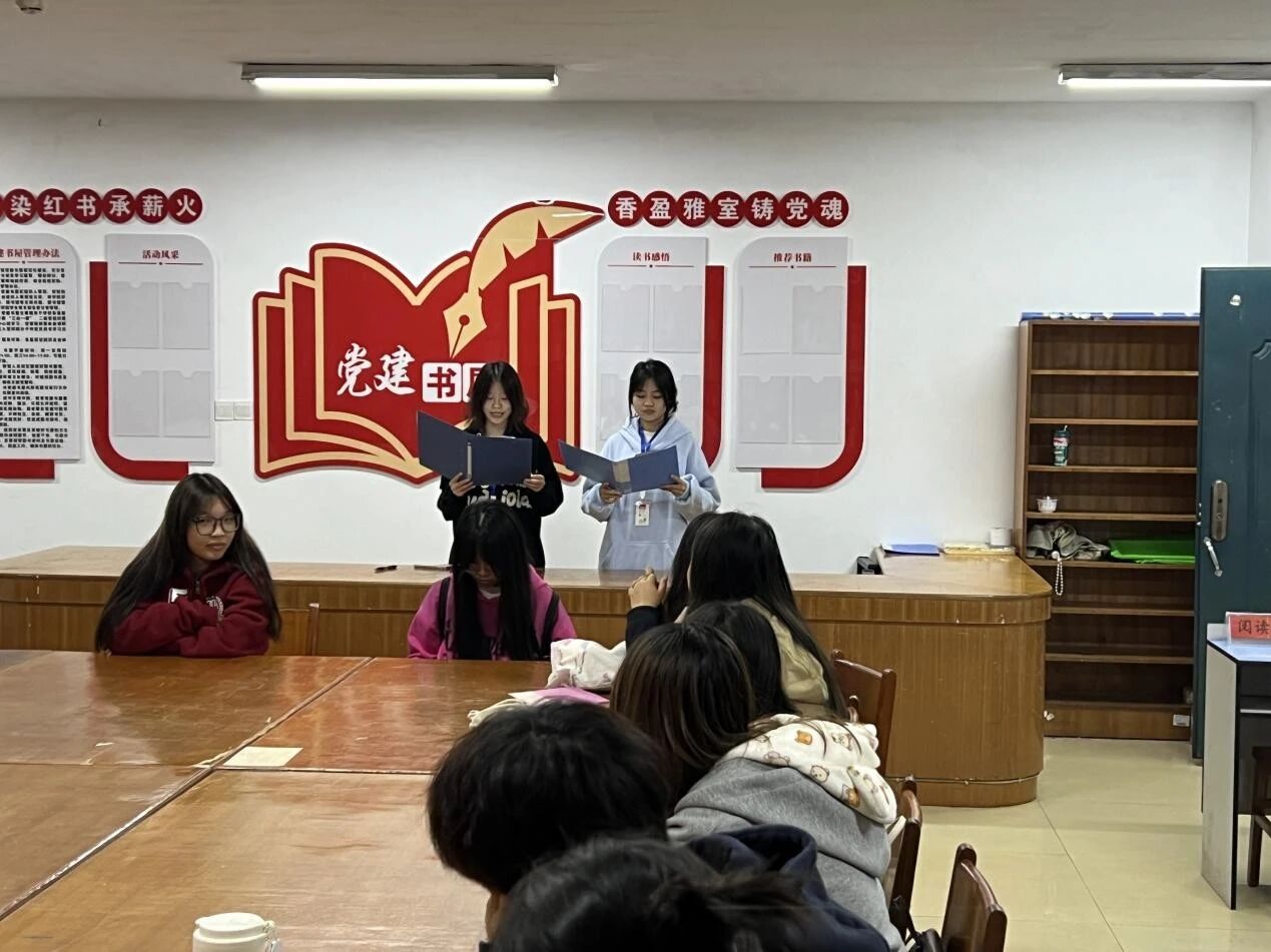 活动伊始,主持人系统介绍了商学院党建书屋的功能定位。作为集学习、交流、研讨于一体的红色文化阵地,书屋以“学党史、传红色基因”为引领,积极推动党建与商学专业深度融合,着力培养新时代复合型人才。这里不仅是传播党的创新理论、提升师生素养的精神家园,更是通过丰富阅读活动增强党组织凝聚力的重要平台。书屋藏书涵盖红色经典、商学专业和药学、土木等跨学科书籍,充分满足师生多元化阅读需求。
