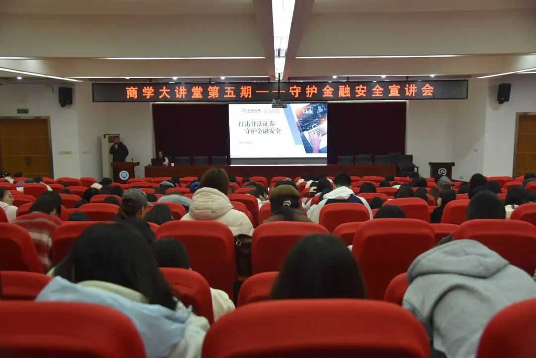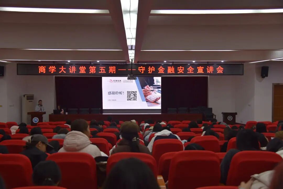 在金融市场日益繁荣,各类金融产品和服务不断推陈出新的当下,一些不法分子也趁机打起了歪主意,金融诈骗手段花样翻新、层出不穷,令人防不胜防。许多缺乏防范意识和专业知识的学生,不幸成为了诈骗分子的目标,遭受了严重的财产损失,甚至陷入生活的困境。为了有效提升商学院师生的金融防诈意识,切实守护好大家的“钱袋子”,2025年12月9日,一场意义非凡的金融反诈宣传会在商学院多媒体报告厅拉开了帷幕。