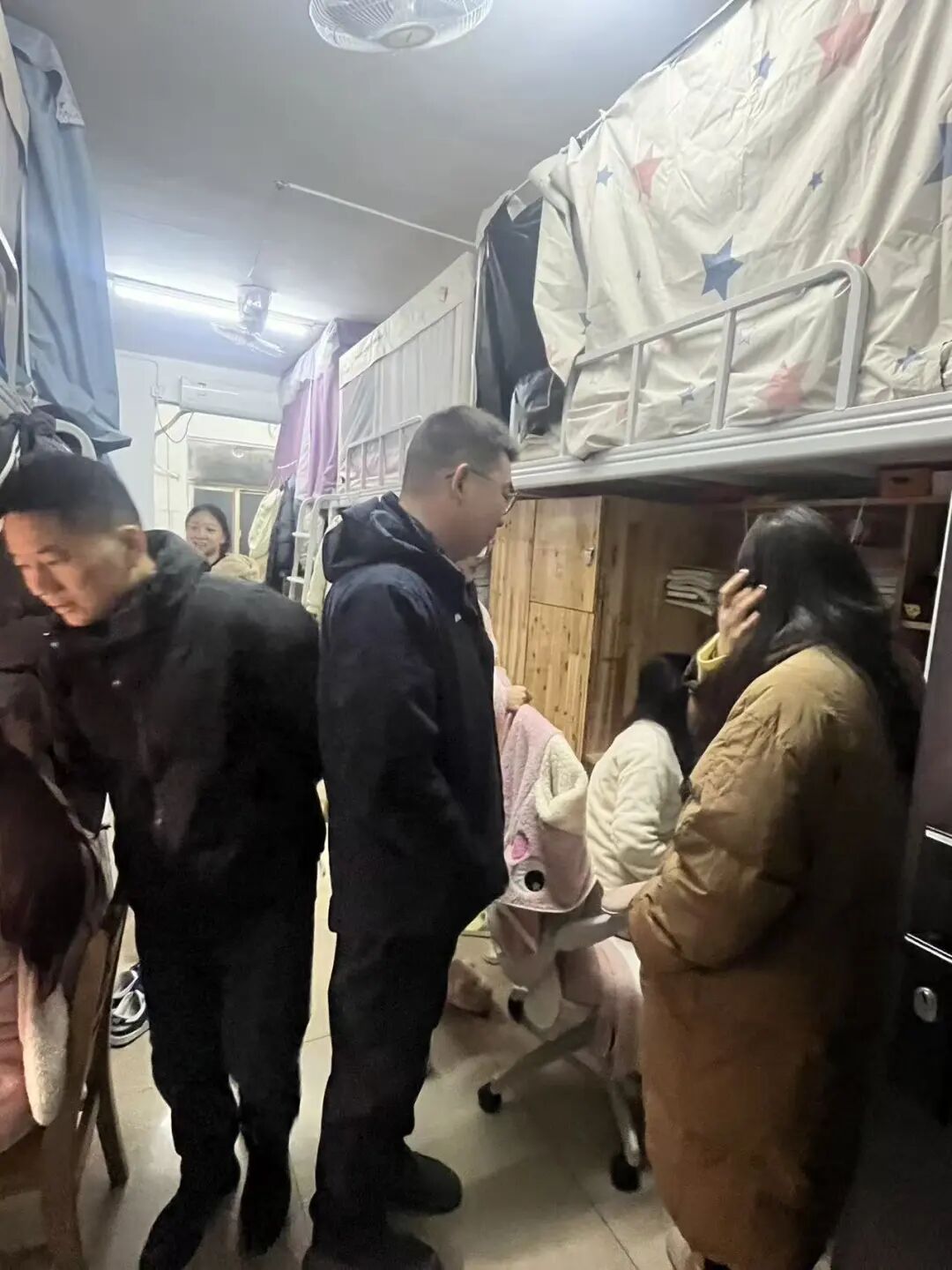 走访过程中,领导老师们一行深入各楼栋宿舍开展检查慰问,询问学生返校安全情况,重点排查了宿舍内用电安全、消防设施情况等安全隐患,提醒同学们务必增强安全防范意识,规范使用电器,保持宿舍通风整洁,共同营造安全、舒适的居住环境。一句句细致叮嘱,一声声温情问询,让同学们在返校伊始便深切感受到学院大家庭的暖心关怀。