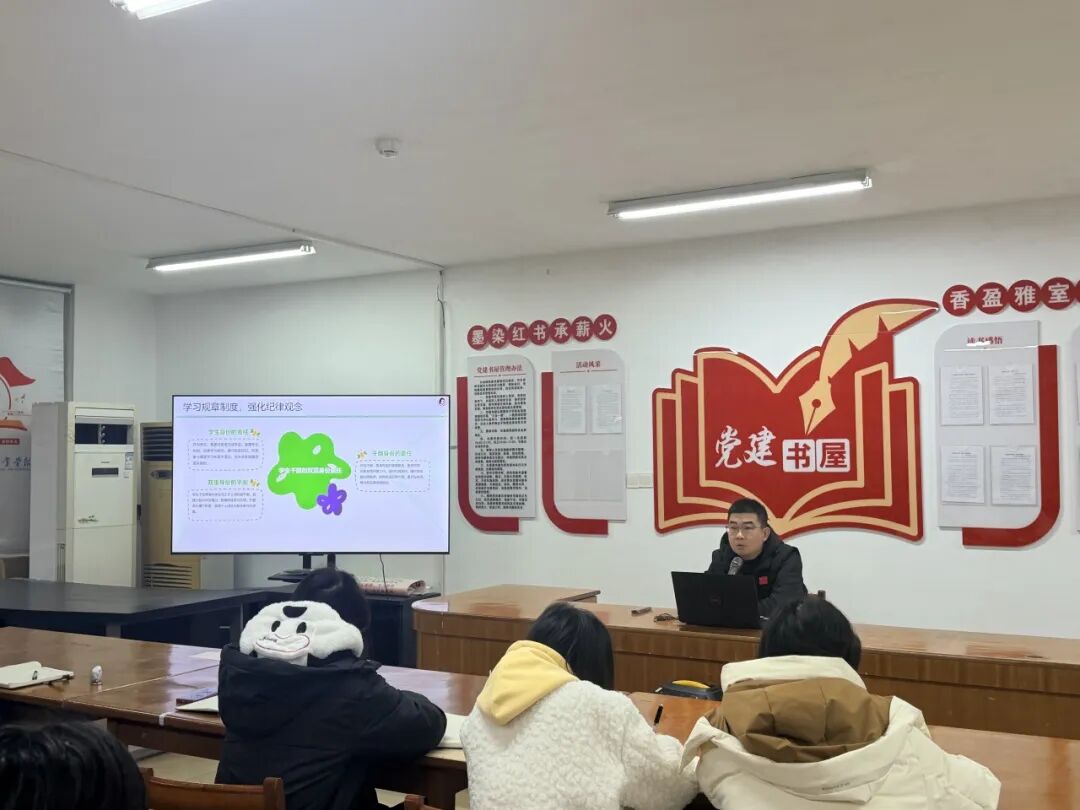 为强化商学院25届团学干部的纪律意识与廉洁素养,明确服务定位、校准成长方向,“启航计划”赋能培训第三期理论学习如期开展。2026年1月12日,党总支副书记王科峰主讲的"团学干部的纪律意识与廉洁教育培训"紧扣团学干部职责痛点,结合真实案例拆解纪律观念、作风养成等核心问题,为团学干部厘清成长方向。