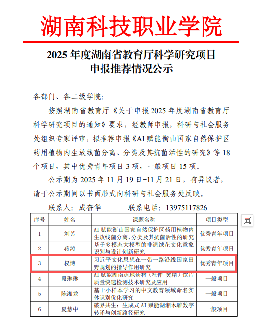 2.权博主持2025年度湖南省教育厅科学研究项目-《习近平文化思想在一带一路沿线国家田野规划的指导作用研究》
