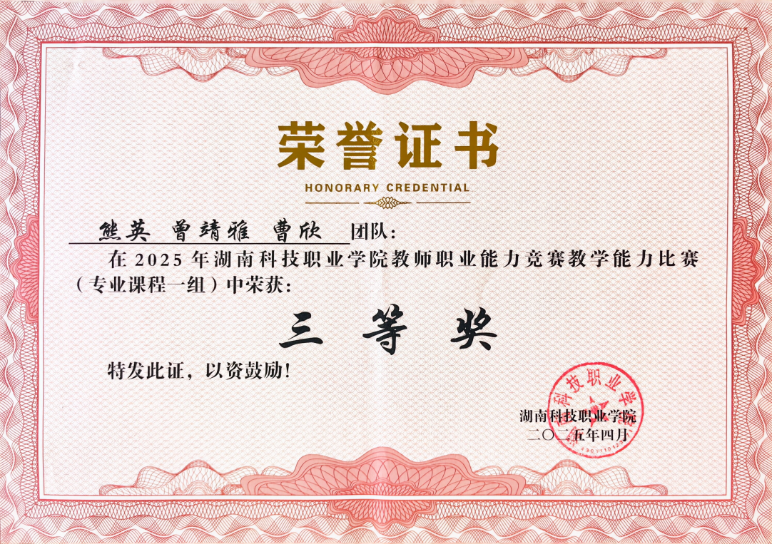 2.熊英、曾靖雅、曹欣参加2025年湖南科技职业学院教师职业能力竞赛教学能力比赛荣获三等奖