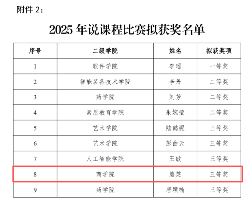 4.熊英参加2025 年湖南科技职业学院说课程比赛荣获三等奖