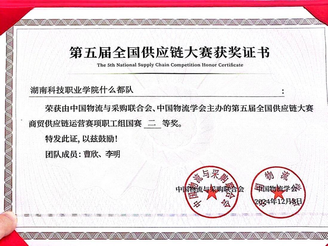 6.曹欣参加第五届全国供应链大赛商贸供应链运营赛项荣获职工组国赛二等奖