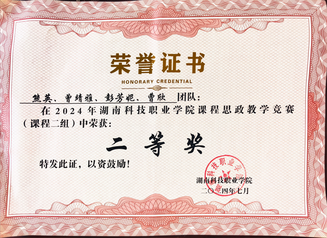 1.熊英、曾靖雅、彭芳妮、曹欣参加2024年湖南科技职业学院课程思政教学竞赛荣获二等奖