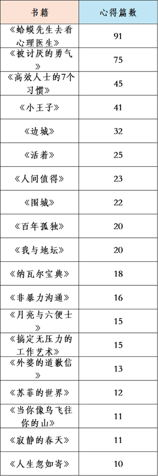 往期活动中,《蛤蟆先生去看心理医生》《被讨厌的勇气》深受同学们喜爱。本期人气最高的三本好书,兼顾情绪修养、人生哲思与心灵沉淀,助力大家持续在阅读中收获成长。